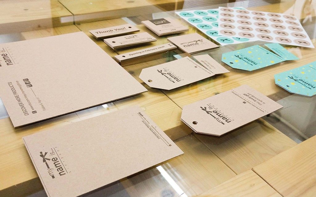 The logo, was applied to product labels, packing boxes, business cards as well as the thank-you note, successfully completing the professional image of «My name is». All the prints were made on craft paper and the color pallet used, composed of dark brown color and mint color, in order to blend harmoniously with the whole philosophy of «My name is».