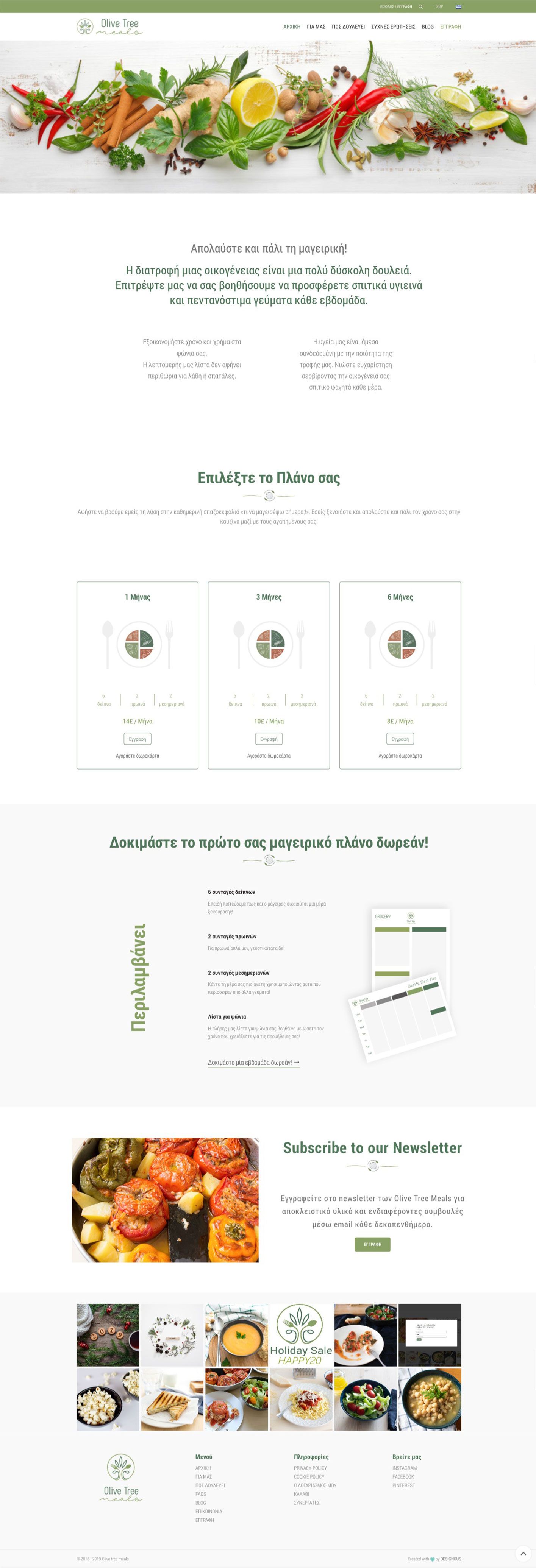 Designous also undertook the designing of a 100% responsive website, which qualifies for a pleasant ux and ui. The site olivetreemeals.com is characterized by easy scroll and speed, while emphasis has been placed on keywords that have been used to achieve top-notch online search results (SEO) versus competition.