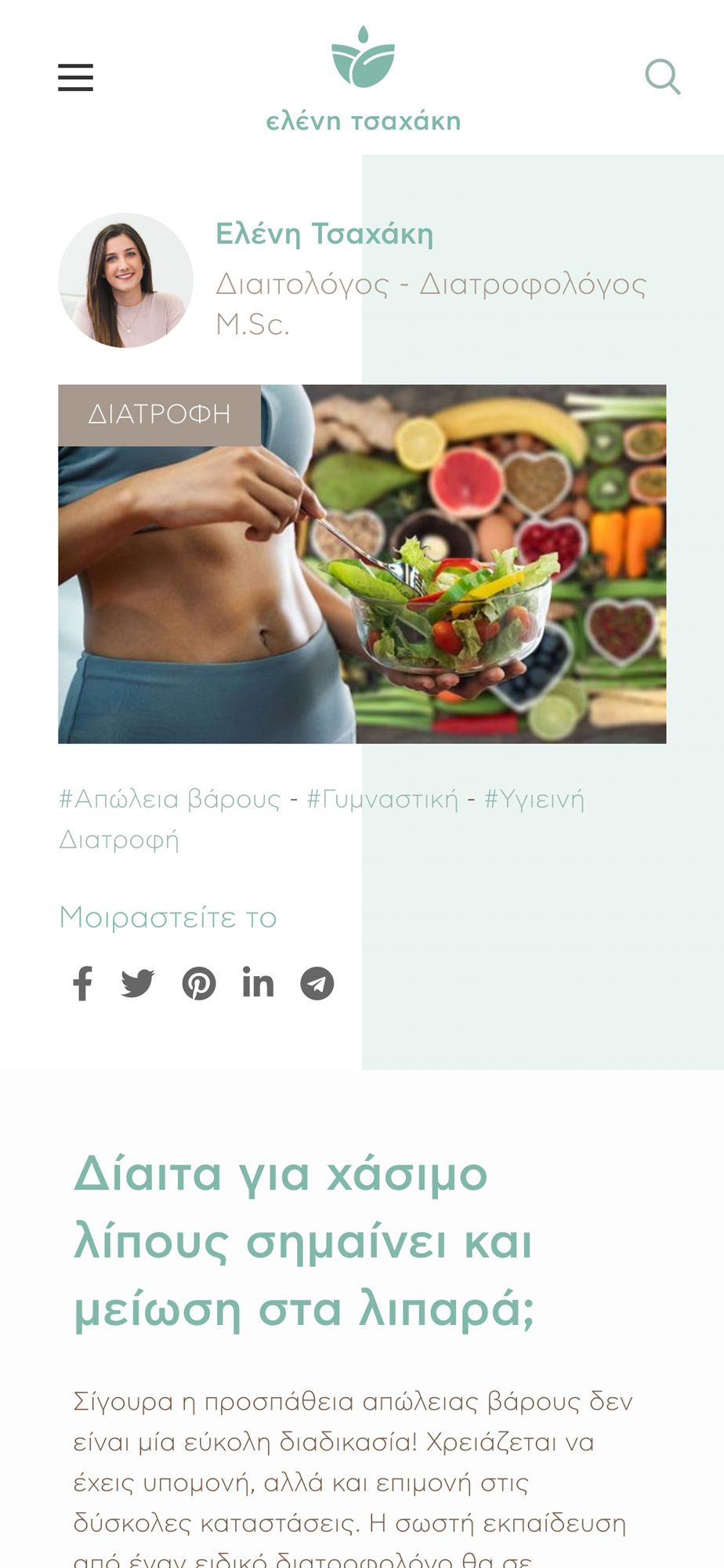Dietitian-nutritionist Eleni Tsachaki, offers inspiration and motivation to those who want to adopt healthier eating habits and enjoy a better lifestyle.