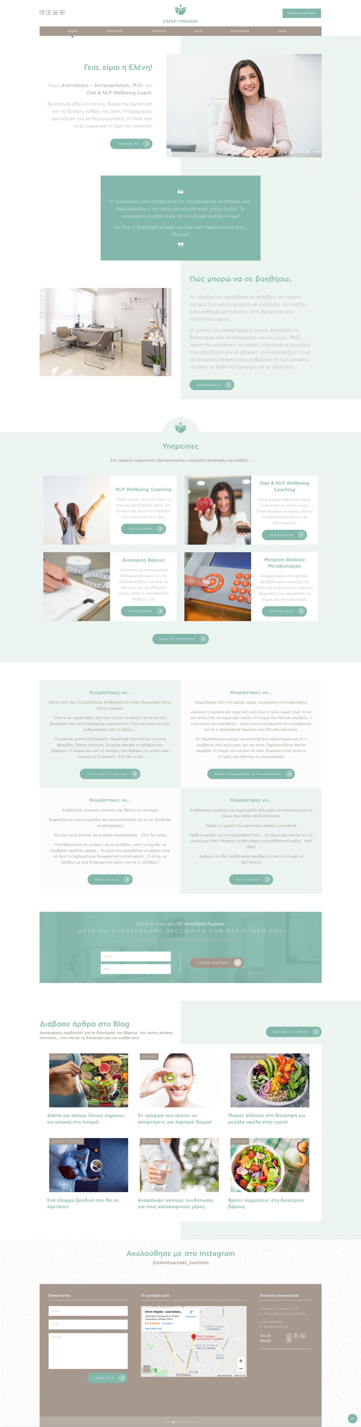 We designed and developed the website for the nutritionist based on the interrelated relationship between nutrition and psychology. Through the design, a clear message is being passed regarding the effect that a balanced diet brings, while emphasizing on the positive feelings of well-being and self-confidence, as a consequence of a healthy diet.