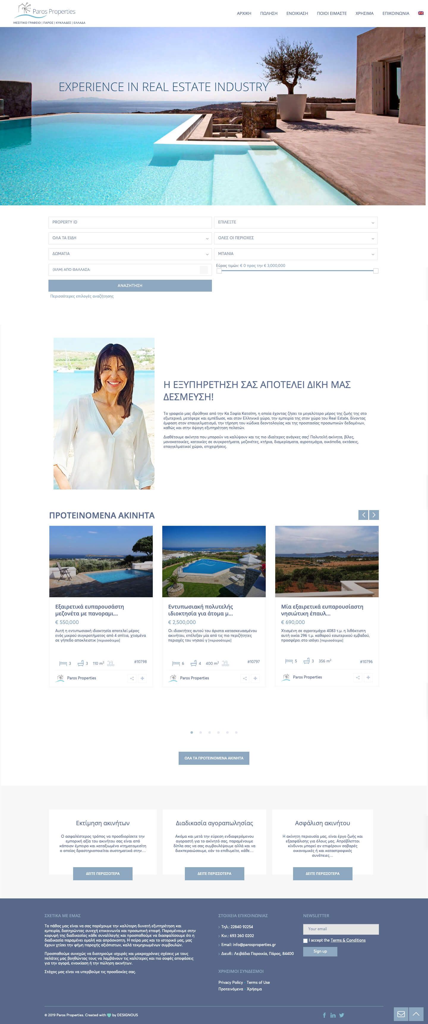 Ο σχεδιασμός ιστοσελίδας για το μεσιτικό γραφείο Paros properties στην Πάρο.