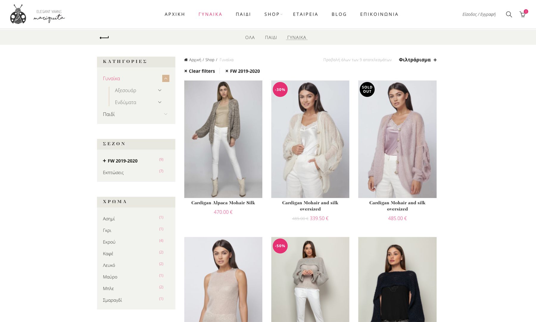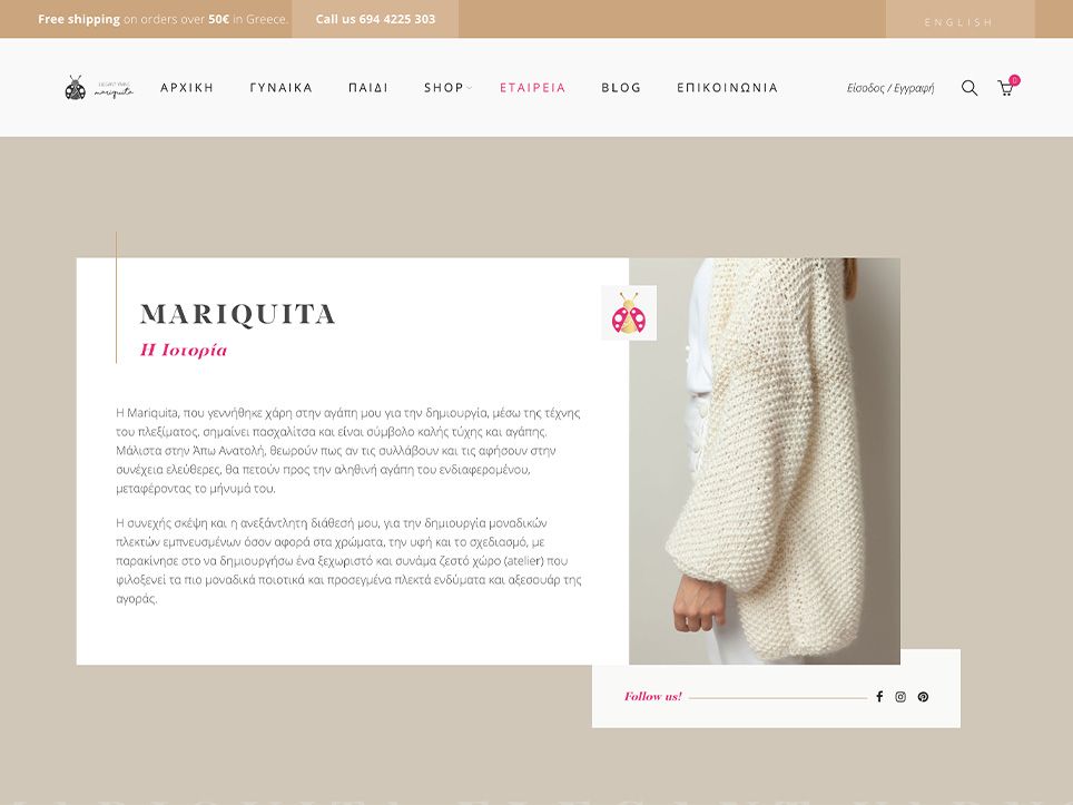 Ο σχεδιασμός λογοτύπου, εταιρικής ταυτότητας καθώς και ο σχεδιασμός eshop για την εταιρεία Mariquita elegantyarns.