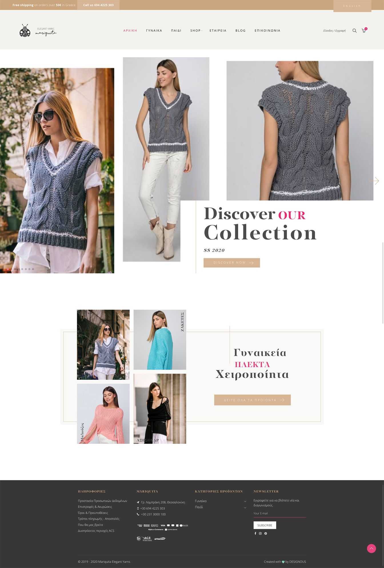 Ο σχεδιασμός λογοτύπου, εταιρικής ταυτότητας καθώς και ο σχεδιασμός eshop για την εταιρεία Mariquita elegantyarns.