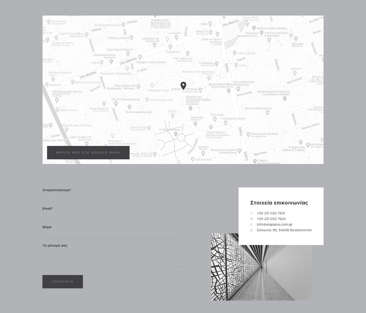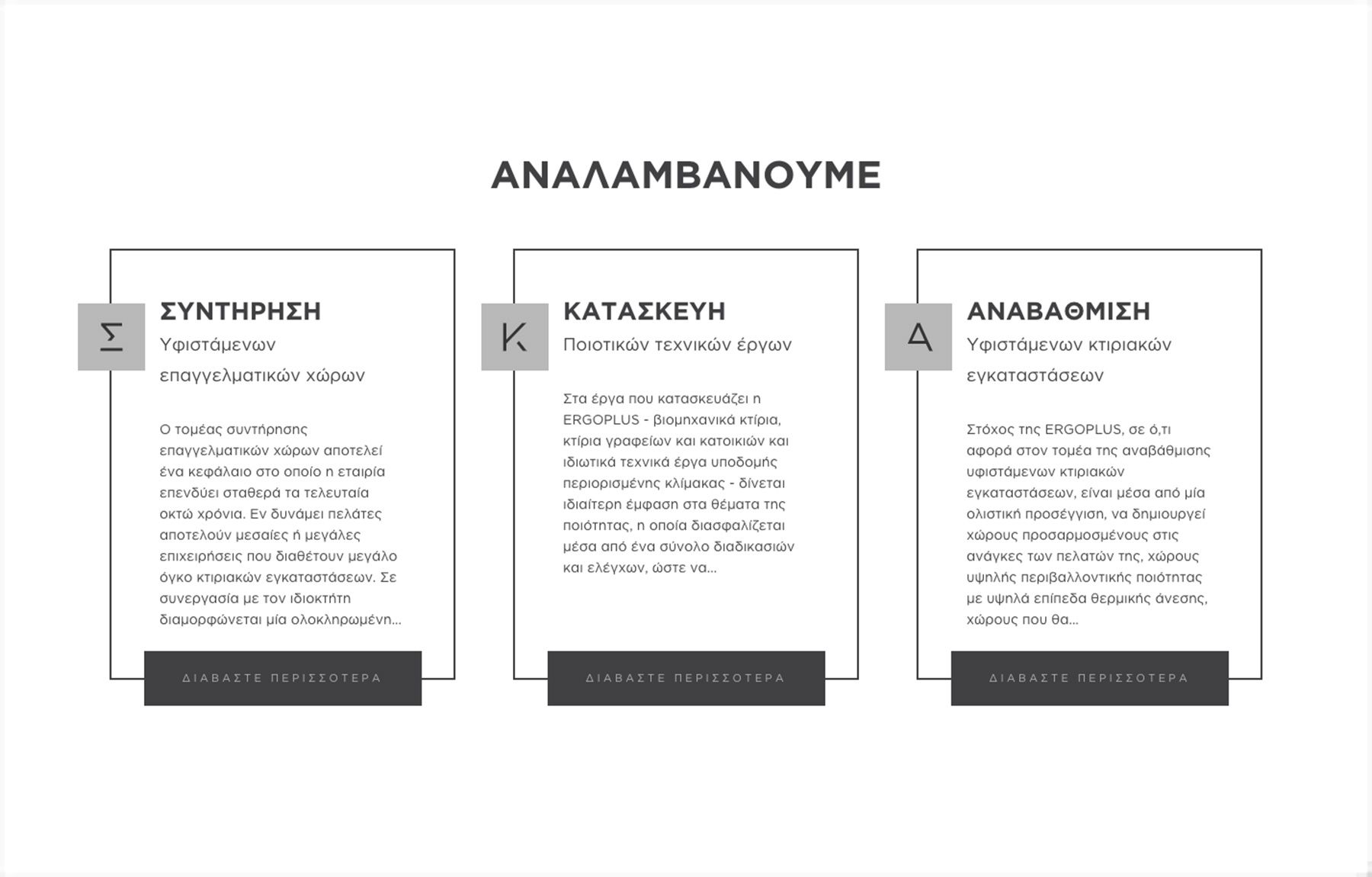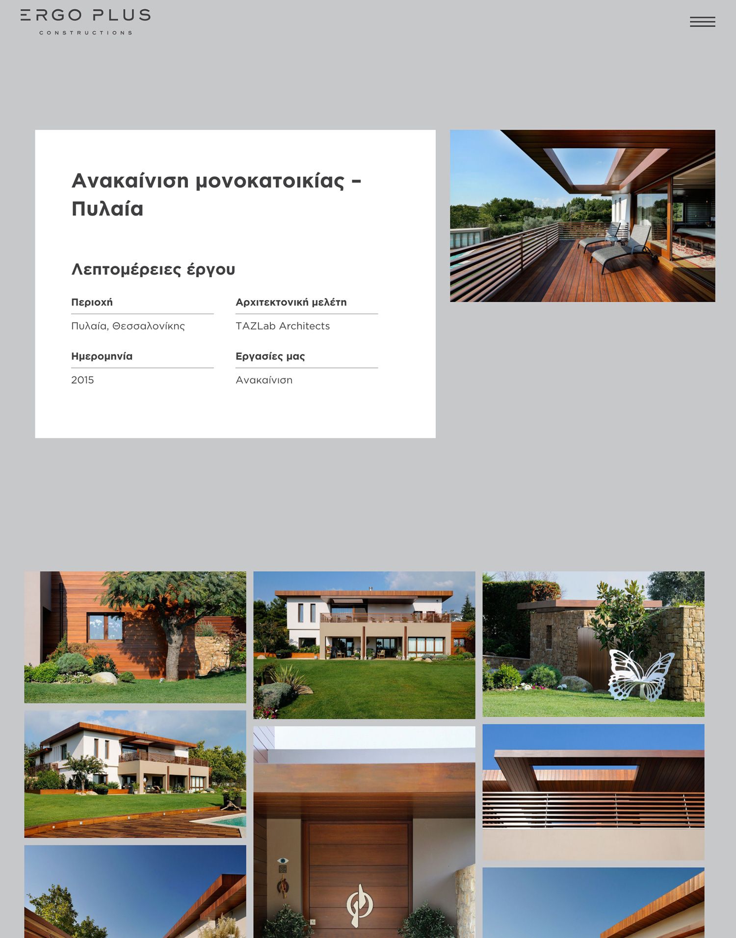 Η τεχνική εταιρεία “ERGOPLUS” με έδρα τη Θεσσαλονίκη, δραστηριοποιείται στην εκτέλεση ενός ευρύτατου φάσματος ιδιωτικών έργων, αυξημένων απαιτήσεων και σύνθετης τεχνογνωσίας. Αντικείμενο της εταιρείας αποτελεί η συντήρηση επαγγελματικών χώρων, η κατασκευή τεχνικών έργων και η αναβάθμιση υφιστάμενων κτιριακών εγκαταστάσεων. Η εταιρεία, έχει ολοκληρώσει έως σήμερα ένα σημαντικό αριθμό έργων, που αντικατοπτρίζουν το πάθος και την επιμονή για υψηλών προδιαγραφών κατασκευές.