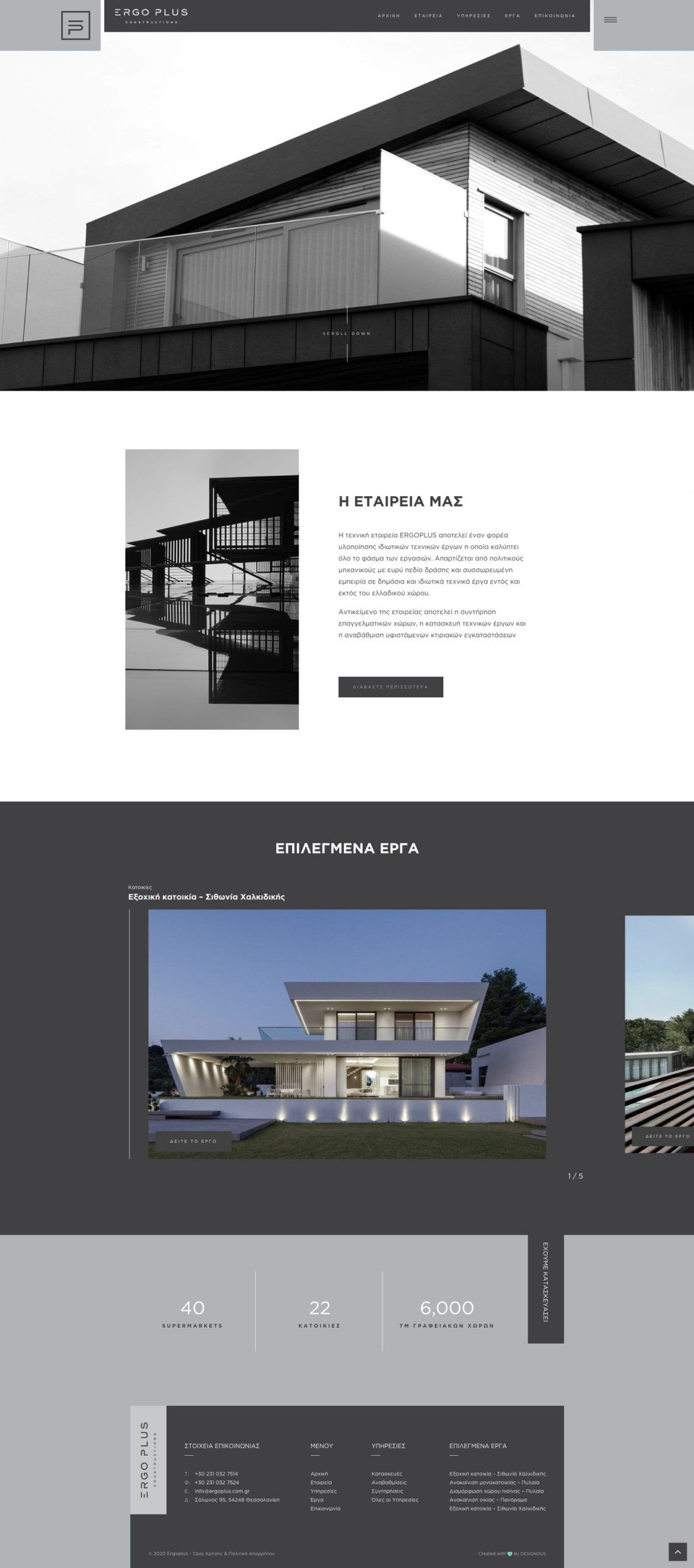 Η δημιουργία της νέας ιστοσελίδας, σηματοδοτεί τη νέα εποχή της “ERGOPLUS” και στόχο έχει να προβάλλει την εξειδίκευση και την κατασκευαστική της αρτιότητα. Με γνώμονα την αισθητική αλλά και τη χρηστικότητα, σχεδιάσαμε ένα απολύτως λειτουργικό website, συμβατό με όλες τις κινητές συσκευές, το οποίο αναδεικνύει μοναδικά τα τεχνικά έργα.