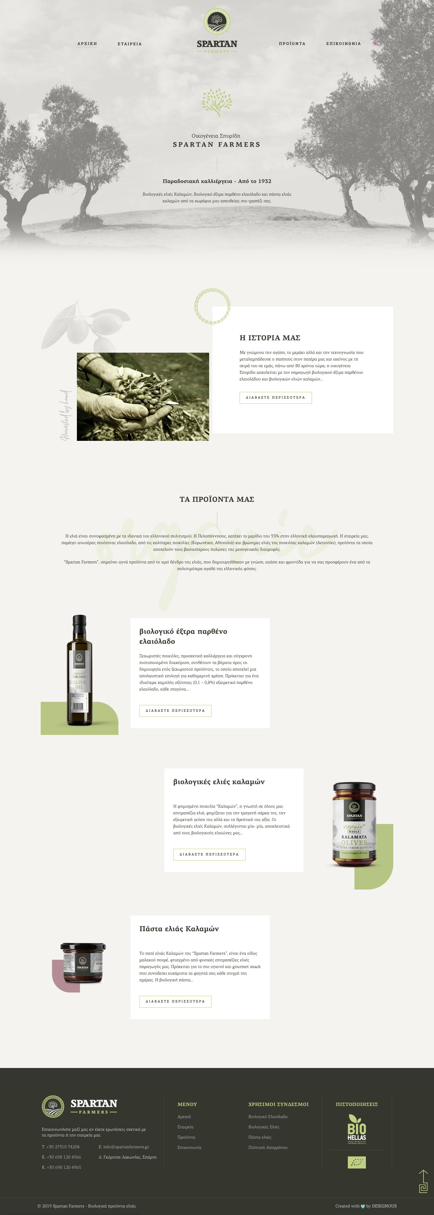 Η δημιουργία του branding, ο σχεδιασμός συσκευασίας και δημιουργία ιστοσελίδας για την οικογενειακή επιχείρηση παραγωγής βιολογικών προϊόντων ελαιολάδου “Spartan Farmers”, στη Σπάρτη.